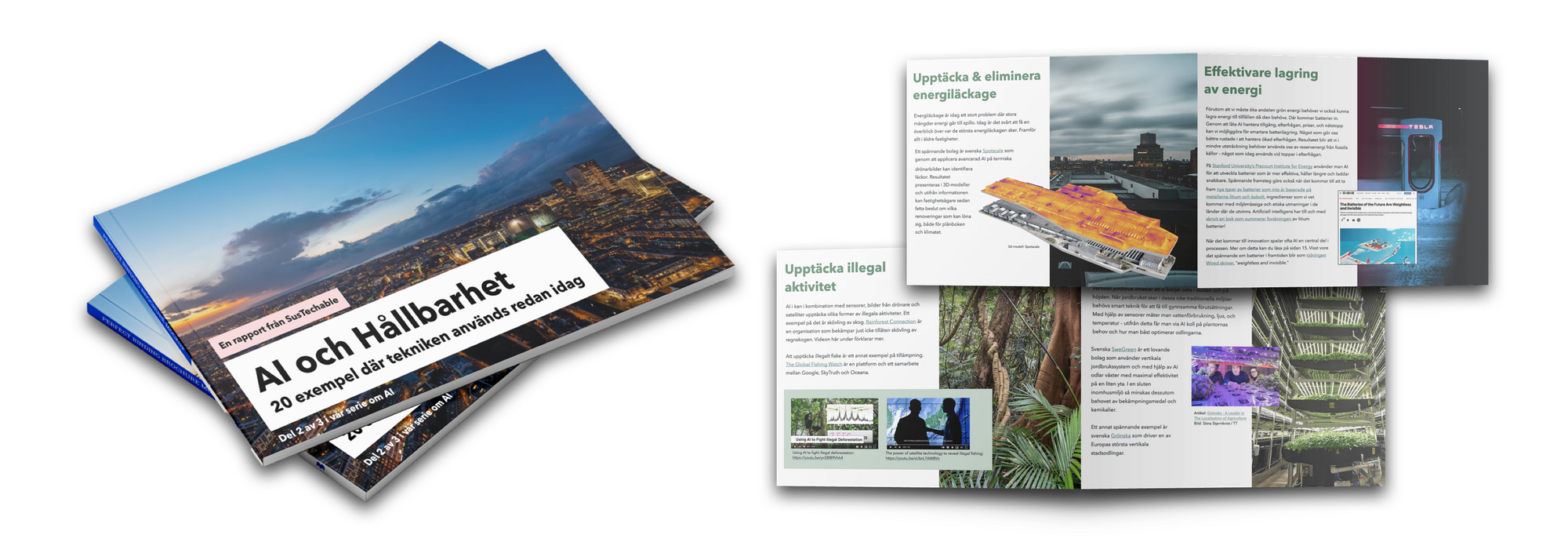 Fler exempel på hur AI kan hjälpa oss att optimera och effektivisera processer finns i oändlighet. Du hittar flera i vår SusTechable-rapport från 2021, AI och hållbarhet – 20 exempel där tekniken används redan idag, som finns gratis att ladda ner här.