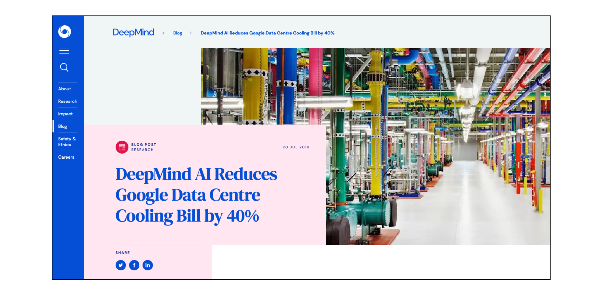 AI kan exempelvis användas för att optimera energiförbrukningen i våra byggnader. Google lyckades redan 2016 få ner energiförbrukningen i sina datacenter med 40% med hjälp av AI. Sedan dess har tekniken utvecklats rejält och allt fler använder liknande lösningar för just optimering av energianvändning.