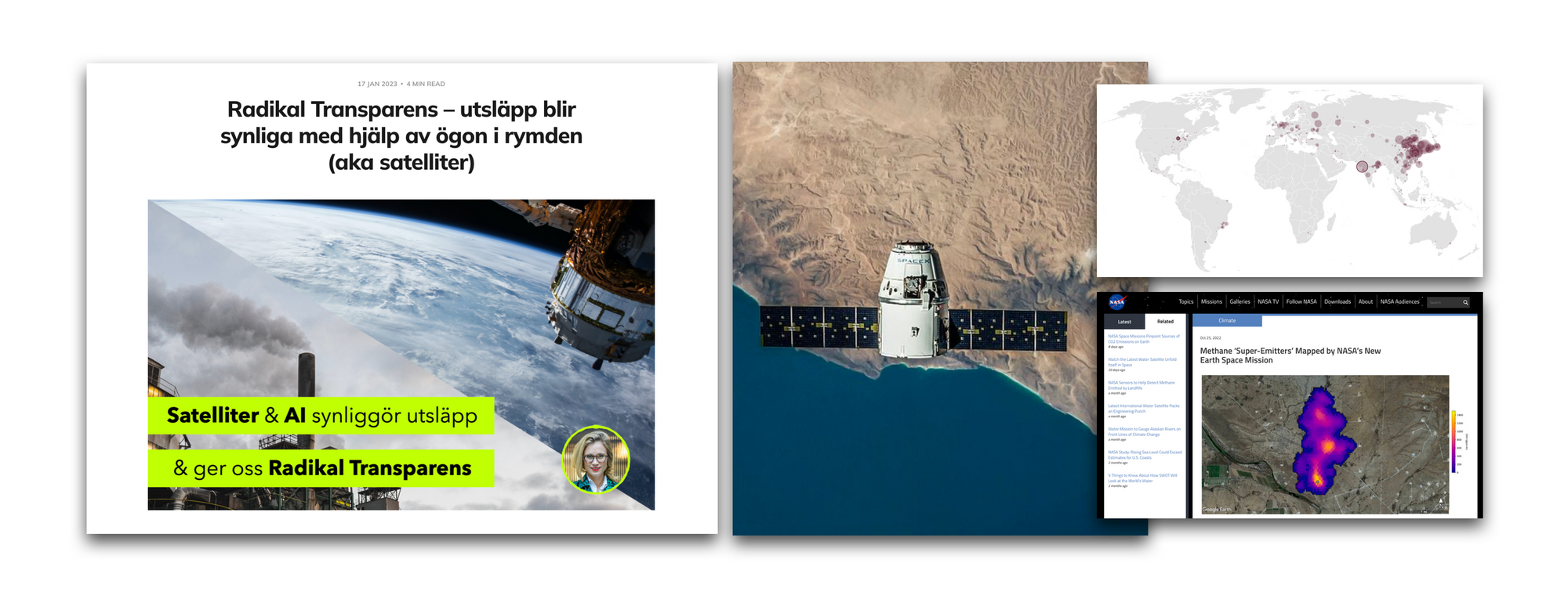 Ett tredje och sista område som jag tänkte lyfta handlar om att AI kan hjälpa oss att sätta krokben för de bolag, stater och aktörer som inte tar sitt ansvar att ställa om. Till vår hjälp har vi en framväxande "radikal transparens" som tack vare AI och ögon i rymden (aka satelliter) gör det allt svårare att ducka för ansvar. Varje dag och minut samlas en massa global data om planeten in från satelliter som svävar runt jorden och som nu kan användas som verktyg i klimatomställningen.