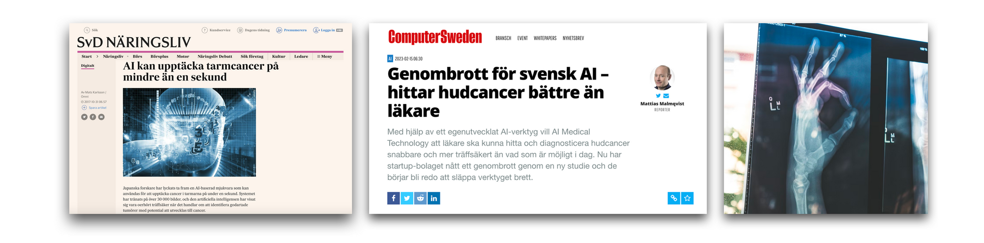 Idag tränas AI-algoritmer upp inom vården för att kunna analysera röntgenplåtar och identifiera både elakartade tumörer, och godartade tumörer som riskerar att utvecklas till elaka varianter. Detta är moment som tidigare bara läkare har gjort. Att ta hjälp av teknik i analysfasen inom vården innebär dels att risken för mänskliga fel minskar, men också att kostnaderna går ner och vårdköerna kan bli kortare. Att ta hjälp av AI innebär inte att läkaren står utan jobb, snarare att en specifik del automatiseras och effektiviseras, så att läkaren får mer tid över till andra delar där hon också behövs – som att kunna ge mer tid för möte med patienter.