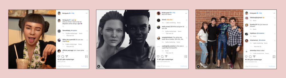 Min magiska business-partner Karin Winther har snöat in på området virtuella influencers och bland annat skrivit om fenomenet i Veckans Affärer där hon menar att de ofta “känns mer äkta än slätstrukna människor”.